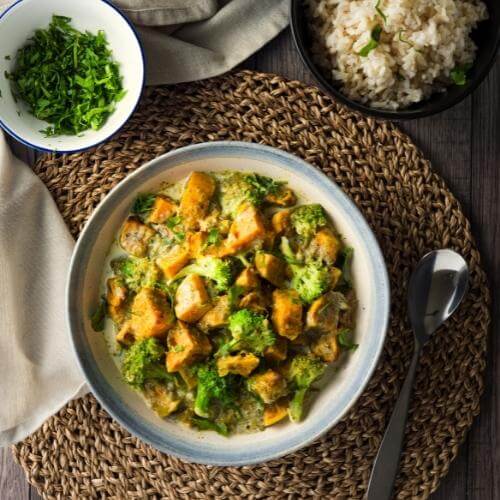 Dieses indische Curry überzeugt geschmacklich durch das Zusammenspiel von Süßkartoffel, Kartoffel und Brokkoli. Ein richtiger Sattmacher, der am nächsten Tag sogar noch besser schmeckt!